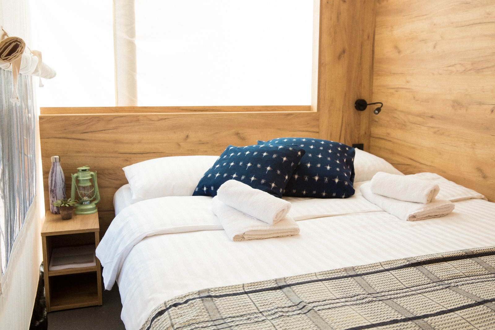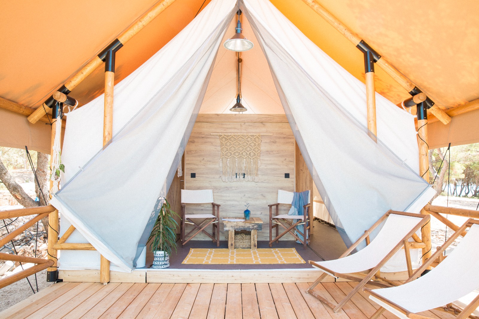 These beautifully designed lodges offer guests the perfect balance of rustic glamping charm and modern comforts, including air conditioning, locks, and private bathrooms. The standout feature of this accommodation is the stunning view from each unit - whether it's the astonishing scenery of the sunset over the sea, a breathtaking view of the crystal-clear waters, or a calming panorama of the lush pine forest.